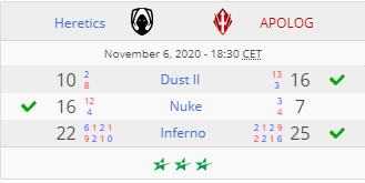 The story took a turn during the semi-final where Team Heretics was up against APOLOGIS Esport playing de_dust2, de_nuke and de_inferno as the decider. kioShiMa and Team Heretics lost 1–2 where the third map was an overtime thriller ending 22–25.