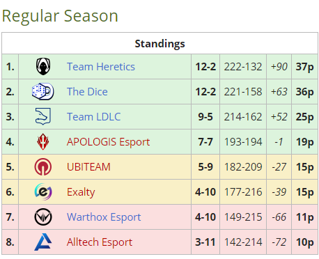ESL Championnat National Winter 2020 featured teams like: Team Heretics, LDLC as the standout names. After group play kioShiMa and Team Heretics after were topping the group with a 12–2 win/loss ratio with a +90 round difference.