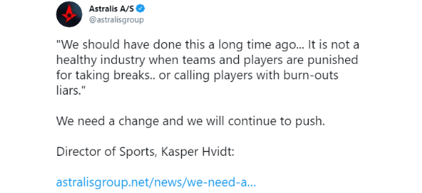 This however, was not exclusive to the CS:GO department, but for all of the teams playing under Astralis Group. This was the case for the Origen team, which per Lewis’ article, had to take a paycut to sign Elias ‘Upset’ Lipp, then five months later asked for the famous 30% salary pay cut.